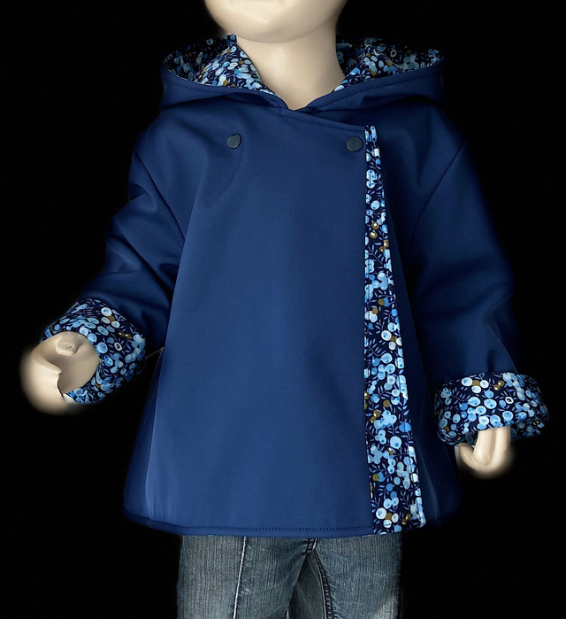 Manteau mi saison bleu. Il possède des manches assez longues pour pouvoir jouer sur les revers pour le porter sur 2 années.